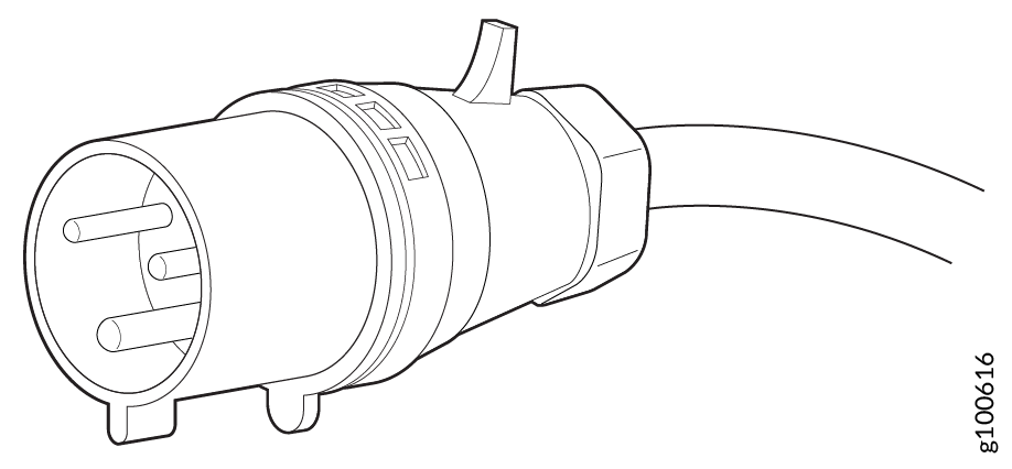 You can order detachable AC power cords, each approximately 8 ft (2.5 m) long that supply AC power to the router. The C19 appliance coupler end of the cord inserts into the AC appliance inlet coupler, type C20 (right angle) as described by International Electrotechnical Commission (IEC) standard 60320. The plug end of the power cord fits into the power source receptacle that is standard for your geographical location.